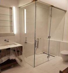 Excellent work of bathroom glass cabin work done by expertise of K K Glass at reasonable rates. All heavy and standard fittings used for tufned glass.